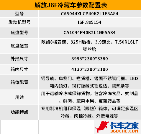 一款冷藏车好不好用,除了看底盘配置,最重要的就是冷机配置。青岛解放带来的这款J6F高端冷藏车配备了冷王RV580制冷机组,极大的满足了冷藏需求。